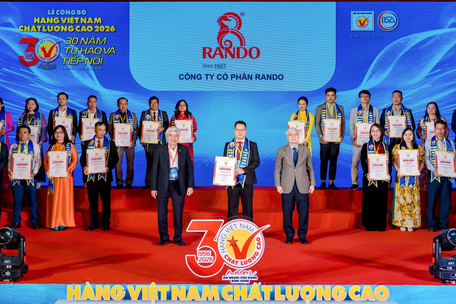 Vừa qua, ngày 31/3/2026, CÔNG TY CỔ PHẦN RANDO với thương hiệu RANDO đã được trao tặng danh hiệu Hàng Việt Nam chất lượng cao 2026 tại Hội trường Thống Nhất (TP.HCM) do Hiệp hội Doanh nghiệp HVNCLC tổ chức và cô bố. Đây là năm thứ 18 liên tiếp RANDO được người tiêu dùng tin tưởng bình chọn Hàng Việt Nam Chất Lượng Cao