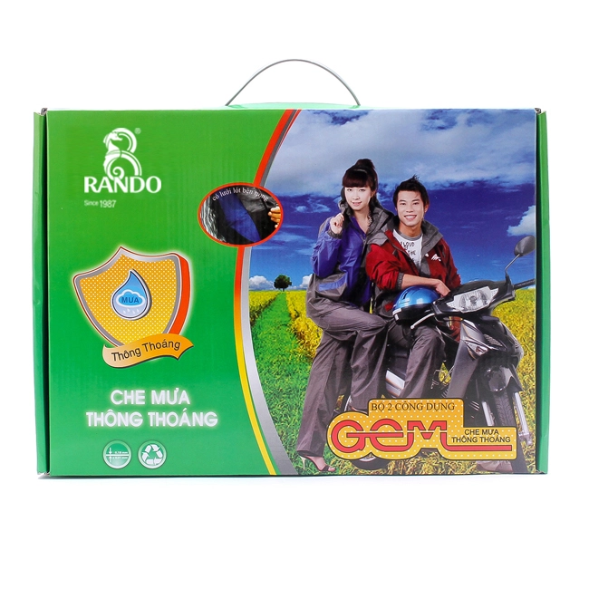 Bộ GEM được thiết kế dựa vào sự chắt lọc những ưu điểm vượt trội về chất liệu cũng như về kỹ thuật tiên tiến của Cty RANDO. Với bộ GEM bạn sẽ cảm nhận được sự thoải mái tuyệt vời dưới mưa.